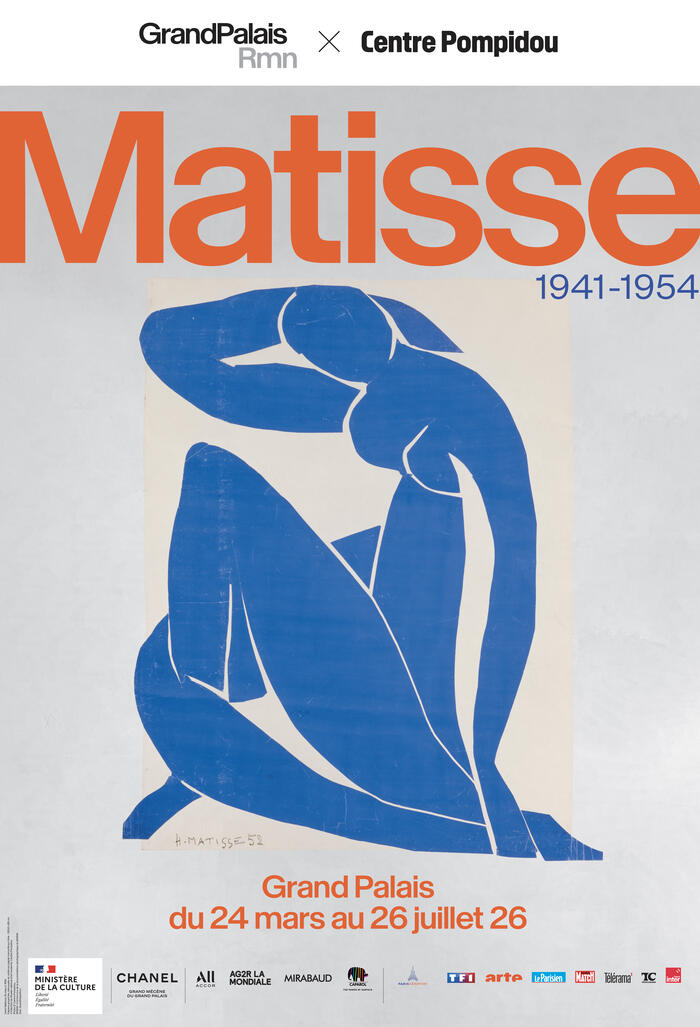 Dibujos, gouaches recortadas, libros ilustrados, textiles, vidrieras… Matisse, 1941–1954 pone de relieve los prolíficos últimos años de creación del artista. A los 80 años, Henri Matisse se reinventó una vez más; nunca antes había variado tanto las técnicas y los soportes. La exposición presenta trescientas obras de una frescura y vitalidad extraordinarias, procedentes de la rica colección del Centre Pompidou, de colecciones privadas y de instituciones nacionales e internacionales, algunas reunidas excepcionalmente para esta muestra (la serie Interiores de Vence; el álbum Jazz; los paneles monumentales de La Gerbe, Acanthes, las grandes figuras en gouache recortada como La tristeza del rey, la serie de los cuatro Desnudos azules…). En permanente metamorfosis, el recorrido de la exposición se vive como una visita al corazón del taller de un artista, poseído por una urgente necesidad de crear.